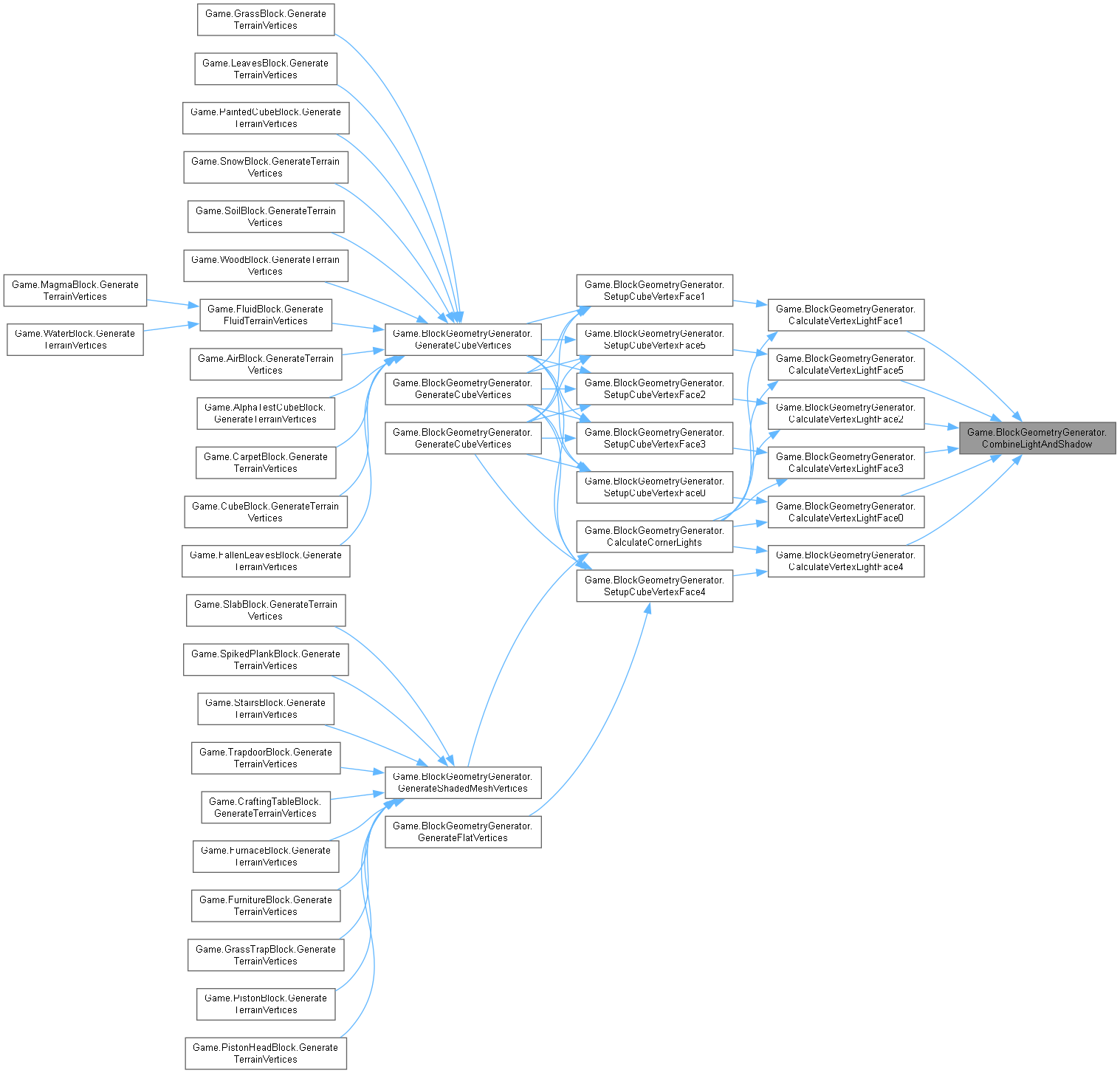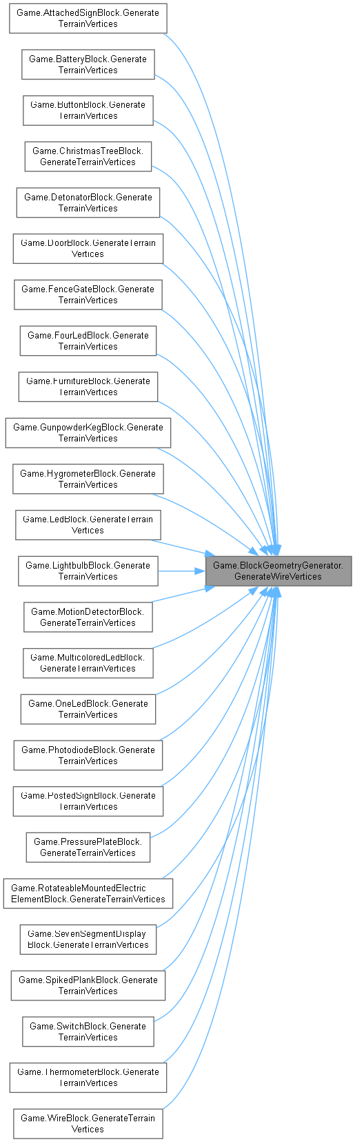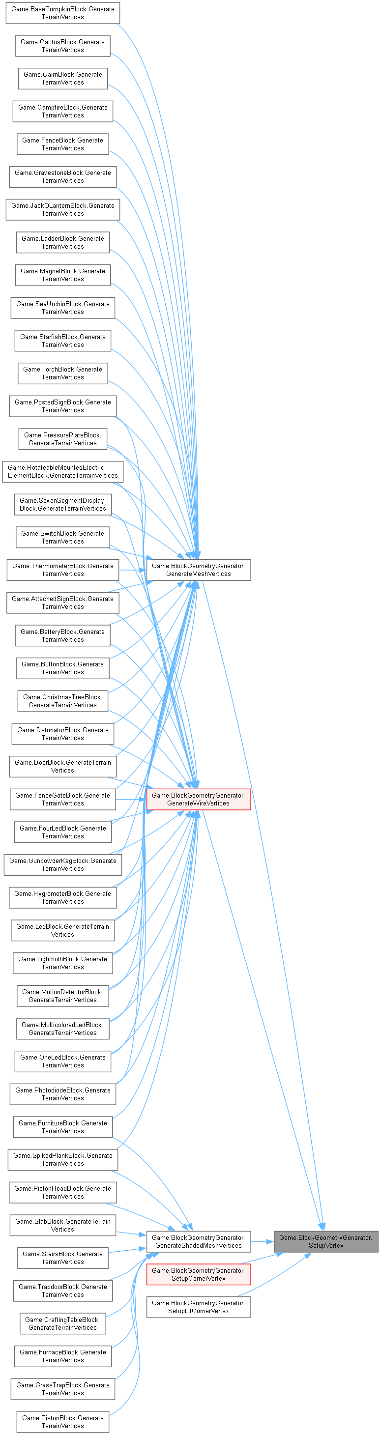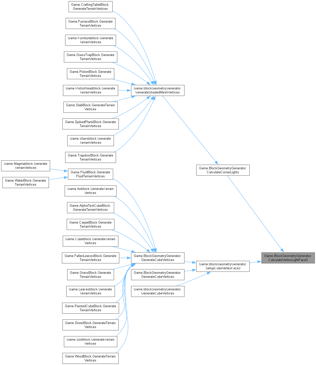 | virtual void | GenerateCubeVertices (Block block, int value, int x, int y, int z, Color color, TerrainGeometrySubset[] subsetsByFace) |