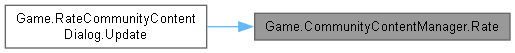 | static void | Rate (string address, string userId, int rating, CancellableProgress progress, Action success, Action< Exception > failure) |