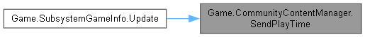 | static void | SendPlayTime (string address, string userId, double time, CancellableProgress progress, Action success, Action< Exception > failure) |