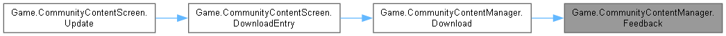 | static void | Feedback (string address, string feedback, string feedbackParameter, string hash, long size, string userId, CancellableProgress progress, Action success, Action< Exception > failure) |