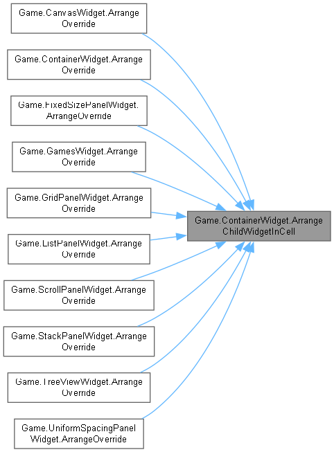 被 Game.CraftingRecipeSlotWidget, Game.CraftingRecipeWidget, Game.FireWidget, Game.FixedSizePanelWidget, Game.FurnitureSetItemWidget, Game.GamesWidget, Game.GridPanelWidget, Game.InventorySlotWidget, Game.ListPanelWidget, Game.PlayerModelWidget, Game.ScrollPanelWidget, Game.ShortInventoryWidget, Game.SliderWidget, Game.SmeltingRecipeWidget, Game.StackPanelWidget, Game.TreeViewWidget , 以及 Game.UniformSpacingPanelWidget 重载.