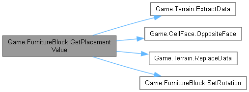 | override BlockPlacementData | GetPlacementValue (SubsystemTerrain subsystemTerrain, ComponentMiner componentMiner, int value, TerrainRaycastResult raycastResult) |