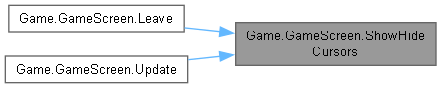 | void Game.GameScreen.ShowHideCursors | ( | bool | show | ) |