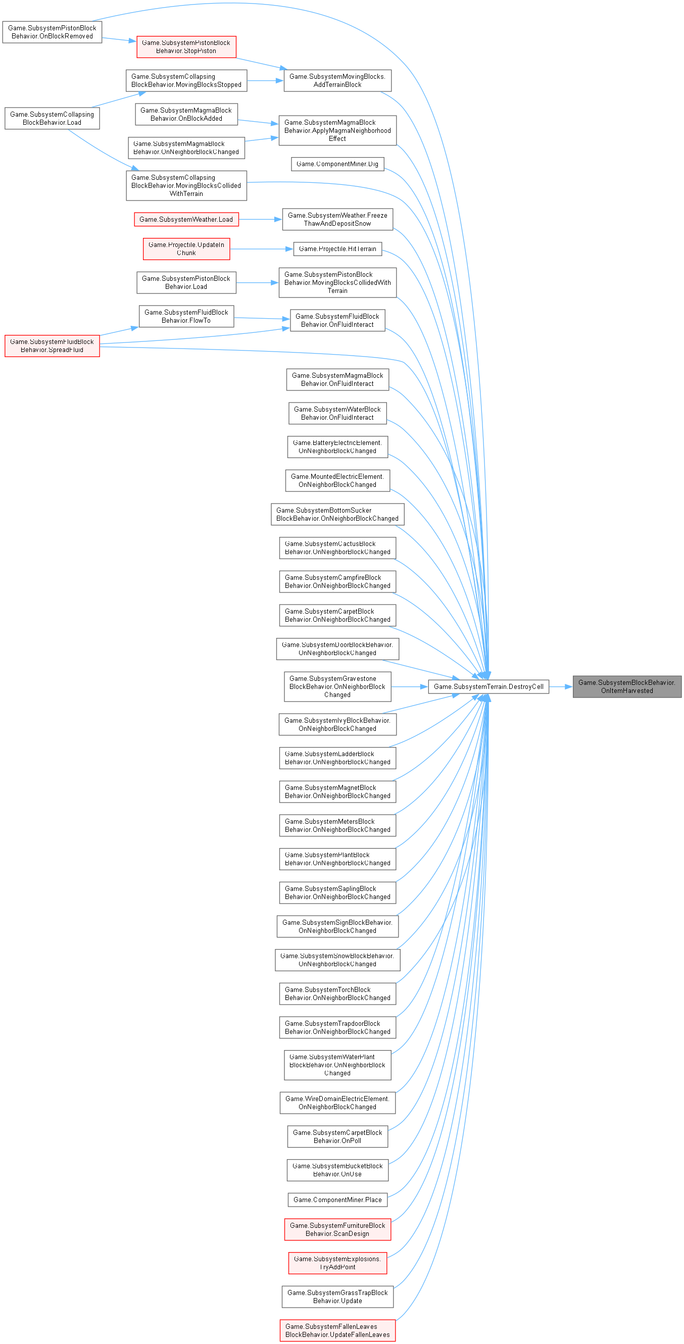 | virtual void | OnItemHarvested (int x, int y, int z, int blockValue, ref BlockDropValue dropValue, ref int newBlockValue) |