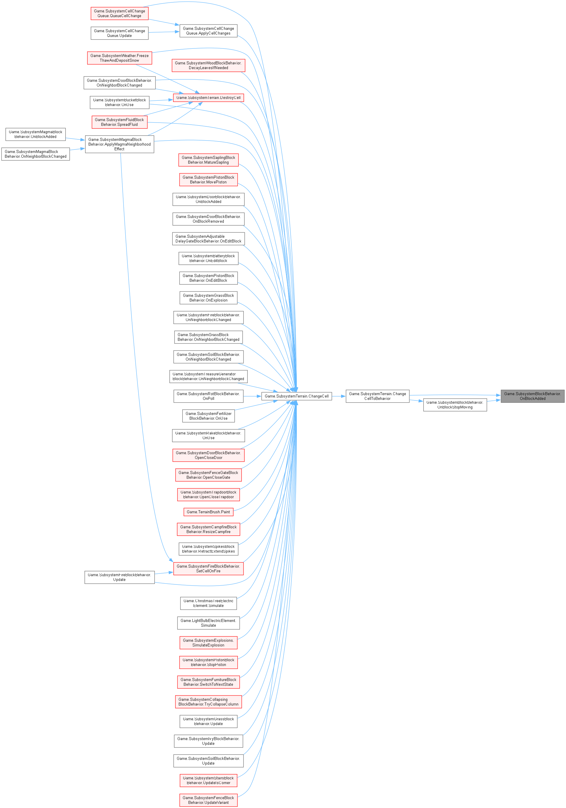 被 Game.SubsystemCampfireBlockBehavior, Game.SubsystemDoorBlockBehavior, Game.SubsystemElectricBlockBehavior, Game.SubsystemEntityBlockBehavior, Game.SubsystemFenceBlockBehavior, Game.SubsystemFireBlockBehavior, Game.SubsystemFluidBlockBehavior, Game.SubsystemFurnaceBlockBehavior, Game.SubsystemFurnitureBlockBehavior, Game.SubsystemMagmaBlockBehavior, Game.SubsystemMagnetBlockBehavior, Game.SubsystemMetersBlockBehavior, Game.SubsystemSaplingBlockBehavior, Game.SubsystemStairsBlockBehavior , 以及 Game.SubsystemTorchBlockBehavior 重载.