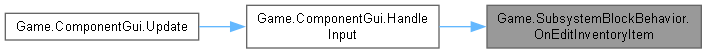 | virtual bool | OnEditInventoryItem (IInventory inventory, int slotIndex, ComponentPlayer componentPlayer) |
