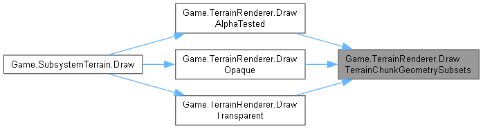 | virtual void | DrawTerrainChunkGeometrySubsets (Shader shader, TerrainChunk chunk, int subsetsMask, bool ApplyTexture=true) |