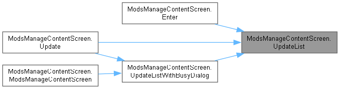| void ModsManageContentScreen.SetModItemList | ( | ) |