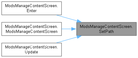 | void ModsManageContentScreen.SetPath | ( | string | path | ) |