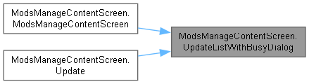| void ModsManageContentScreen.UpdateListWithBusyDialog | ( | bool | fast = false | ) |